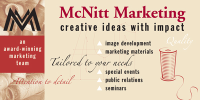 McNitt Marketing: Home of Your Creative TeamImagine a marketing team that will serve as YOUR marketing department. Imagine delegating all your marketing projects, and even those back-burner ones, to a team that will produce and implement creative, professional materials & events in a timely manner. Well, you don't have to imagine anymore.Increase your visibility, improve your image, and generate sales with the McNitt Marketing creative team, an award-winning marketing, public relations and special events firm.